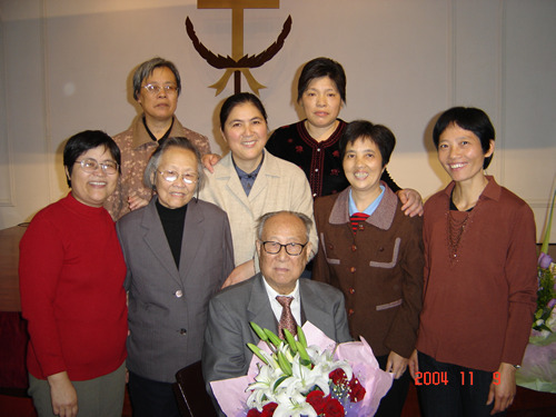(2004年11月90大寿感恩聚会·与家人、弟兄姐妹合影)