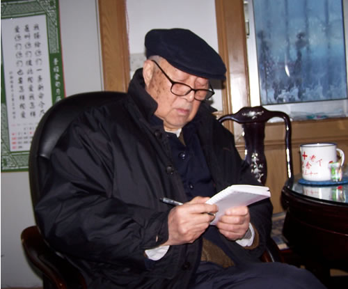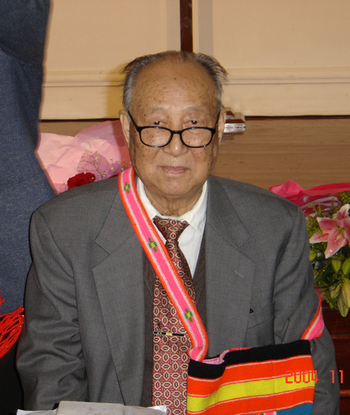 (2004年11月90大寿感恩聚会·背上贵州弟兄姐妹赠送的布袋)