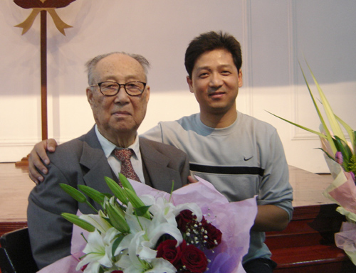 (2004年11月90大寿感恩聚会·与外孙合影)