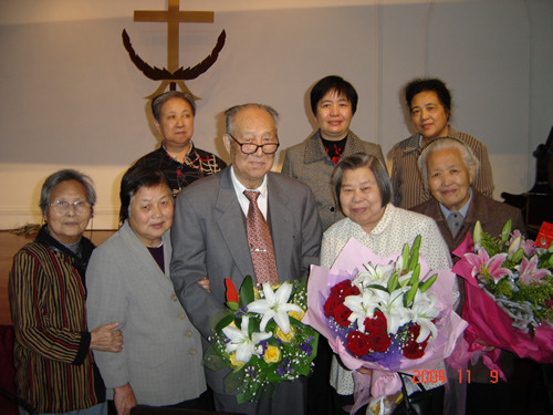 (2004年11月90大寿感恩聚会·与弟兄姐妹合影)